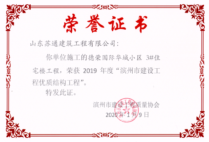 山東蘇通建筑工程有限公司,創建于2009年8月。目前擁有房屋建筑工程施工總承包壹級、市政公用工程施工總承包叁級、水利水電工程施工總承包叁級資質,同時還具有建筑裝修裝飾工程專業承包貳級、消防設施工程專業承包貳級、鋼結構工程專業承包叁級、建筑機電安裝工程專業承包叁級等專業承包資質。 公司總部坐落于山東省濱州市濱城區黃河十二路877號,現有辦公面積約2000平方米,機構設黨支部工會辦公室、總經理辦公室、綜合辦公室、工程管理部、經營預算部、資產財務部、材料設備部、運行管理部、法律事務部等多個職能部門。公司管理體系已經通過了GB/T 19001及GB/T 50430質量管理體系、GB/T 24001環境管理體系(EMS)、GB/T 28001職業健康安全管理體系(OHSMS)等體系的認證。 公司承建完工了濱州市建大教師之家、建大清怡苑、香格里拉水岸綠城住宅小區、雙泰建大城、曲阜崇德公館住宅小區、北海新區御景藍灣住宅小區、沾化德榮國際華城住宅小區、惠民橄欖郡住宅小區等工程項目,目前在建工程項目有:濱州市頤高國際電子商務產業園住宅小區項目、濱州市東盛國際項目、高新區建大中央華府住宅小區項目、濱州市融匯新里程住宅小區項目、濱州市建大秦皇壹號住宅小區項目、濱州市森林花...